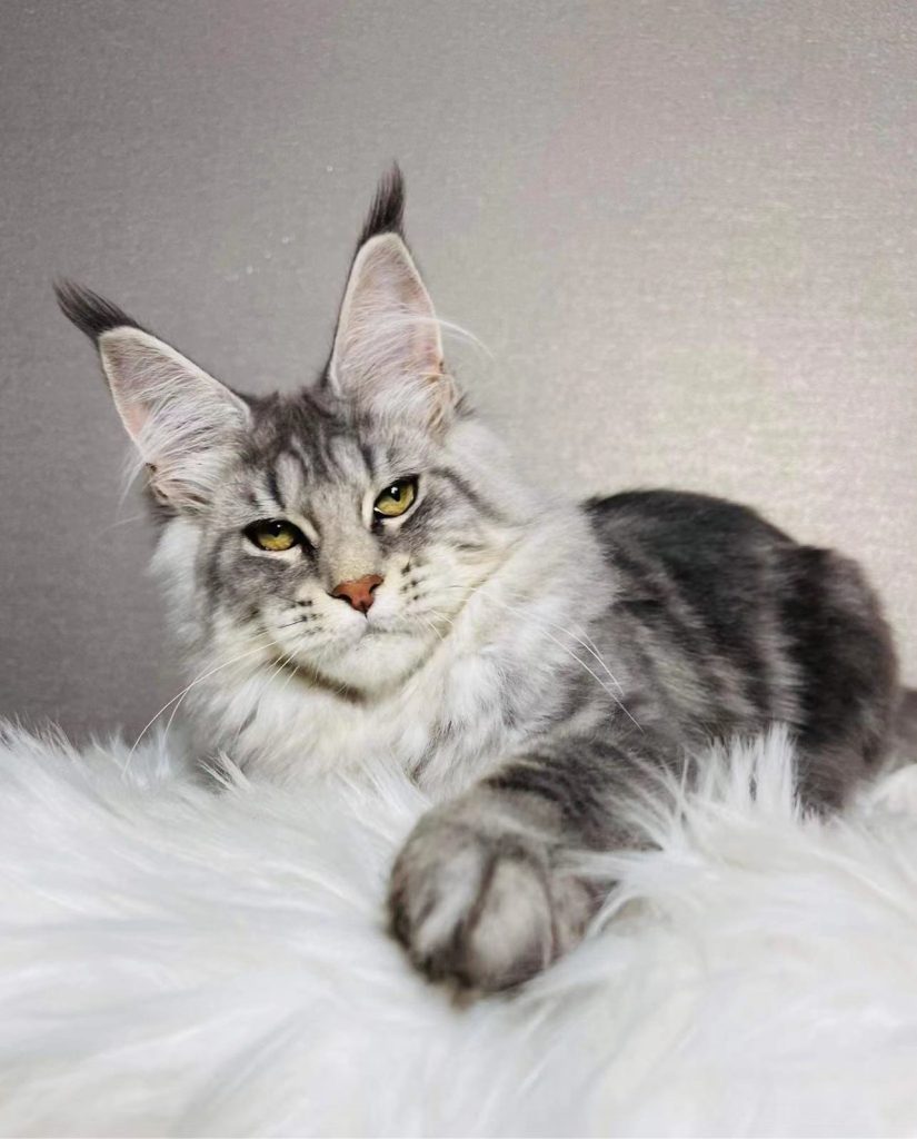 Welkin Blue Maine Coon Cattery 团子家的缅因猫们 关于我们 我们的荣誉 公猫 月团 星团 霜团 海团 枫团 母猫 月饼团 菠萝团 江团 白萝团 夜团 七团 花团 桃心团 狸团 幼猫 繁育计划 如何购买 Menu 关于我们 我们的荣誉 公猫 月团 星团 霜团 海团 枫团 母猫 月饼团 菠萝团 江团 白萝团 夜团 七团 花团 桃心团 狸团 幼猫 繁育计划 如何购买 英文 Beatrice Maryliss Country 月饼团 颜色:蓝银虎斑出生:2022.3.13基因检测:HCM/PKDef/SMA all N/N月饼来我家靠的是缘分。当时刚刚有个准备了很久的阴影妹妹最终确定无法接,晚上伤心刷猫看的时候,突然就刷到她了。她来自一条很少见的阴影血线和一条非常有特色的传统血线结合,非常的美丽。当时她的繁育人还在纠结要不要自留她,我:合同拿来我现在就付款!!!!从看到她到付款全程都不超过三个小时,最终她来到了我家。她有我爱的一切特质,美丽,帅气,360度无死角靠颜值完全抗的住我的死亡照相技术。 她性格有点霸道,在摸她的同时不能摸其他比她地位低或者同等地位的猫,不然其他的猫就会挨她的巴掌。如果摸的是比她地位更高的猫,那个巴掌打到一半居然是可以收回来的,小猫咪会假装无事发生。她非常的外向,家里任何来客都是她带头接待蹭蹭摸摸贴贴,来我家的客人们夸的最多的就是她了~。说了她那么多优点,只有一点我真的不知道是该夸还是该念叨,这么久了我真的不知道她到底是聪明还是有点憨憨的傻。她的任何行为都是学习其他最近跟她相处最好的猫,比如跟着面粉团打白猫,跟着雪团横行霸道,还跟着菠萝团一起丢小猫崽:别人菠萝丢的是你娃!你学会了,叼着自己娃去扔了!!然后回头一起奶菠萝的娃!!!聪明点吧饼子姐!!! 三代血线图
