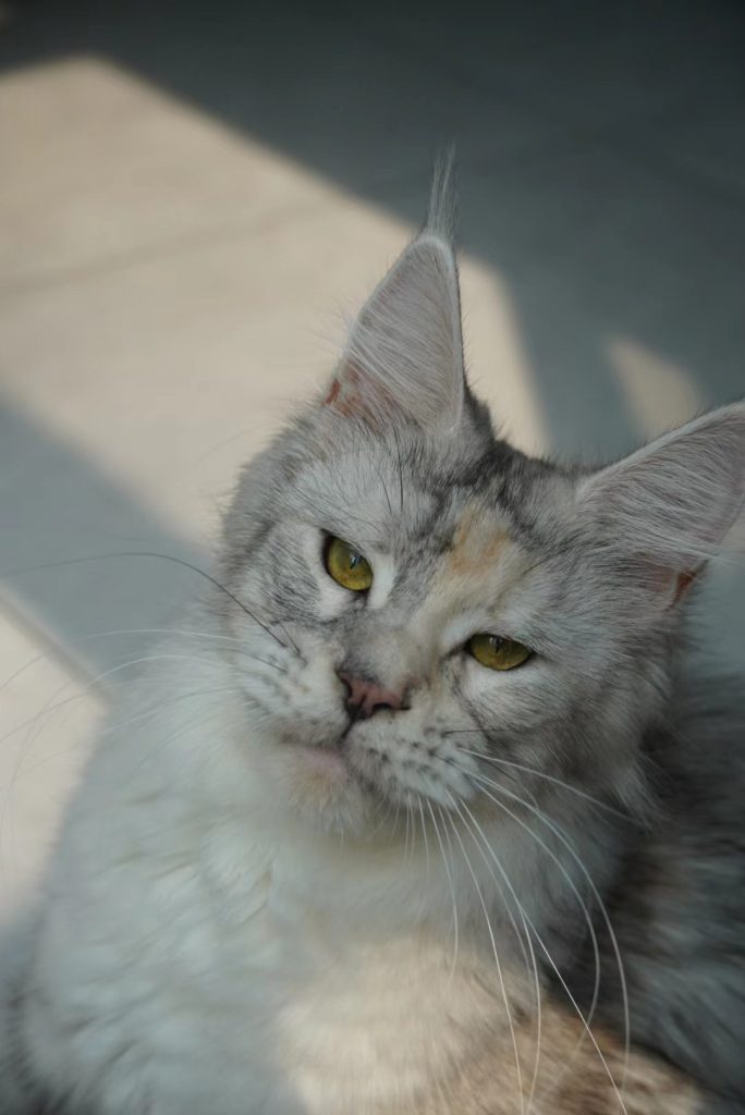 不仅如此,江团的结构也非常出色:她有着饱满的嘴套和结实的下巴,耳朵又高又宽,四肢强壮,尾巴蓬松如狐狸。她不仅外表出众,性格也非常温柔礼貌,从不对人伸爪,也不会和其他猫咪抢饭吃。但有时她也会展现出调皮的一面,偷偷欺负那些看起来温顺的猫。