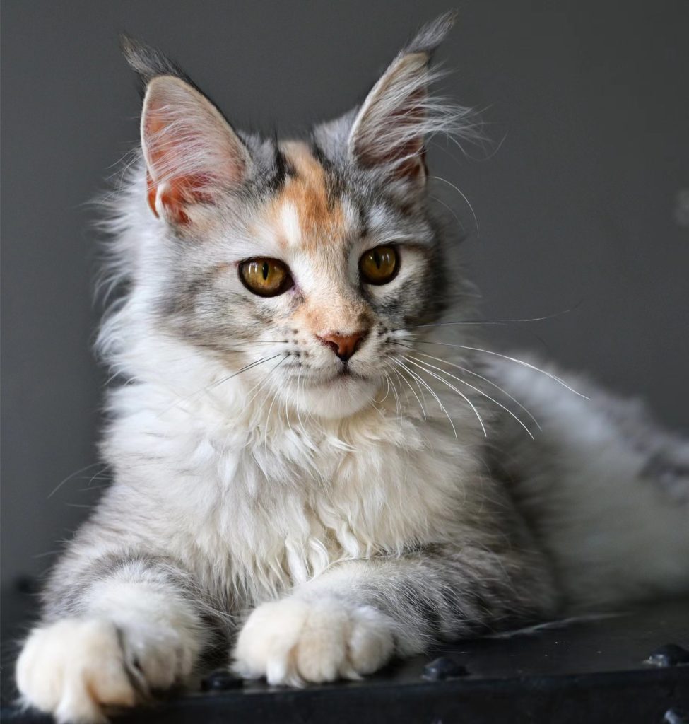 桃心团来自冰蓝缅因猫舍,是我们的交换生之一。她刚出生的时候我就觉得此女必能成大器,于是直接定下来了她。她来到我家之后天天翻着肚子全身放松在床上睡觉,每次路过她她都很礼貌的过来贴贴摸摸,非常的乖巧可爱。